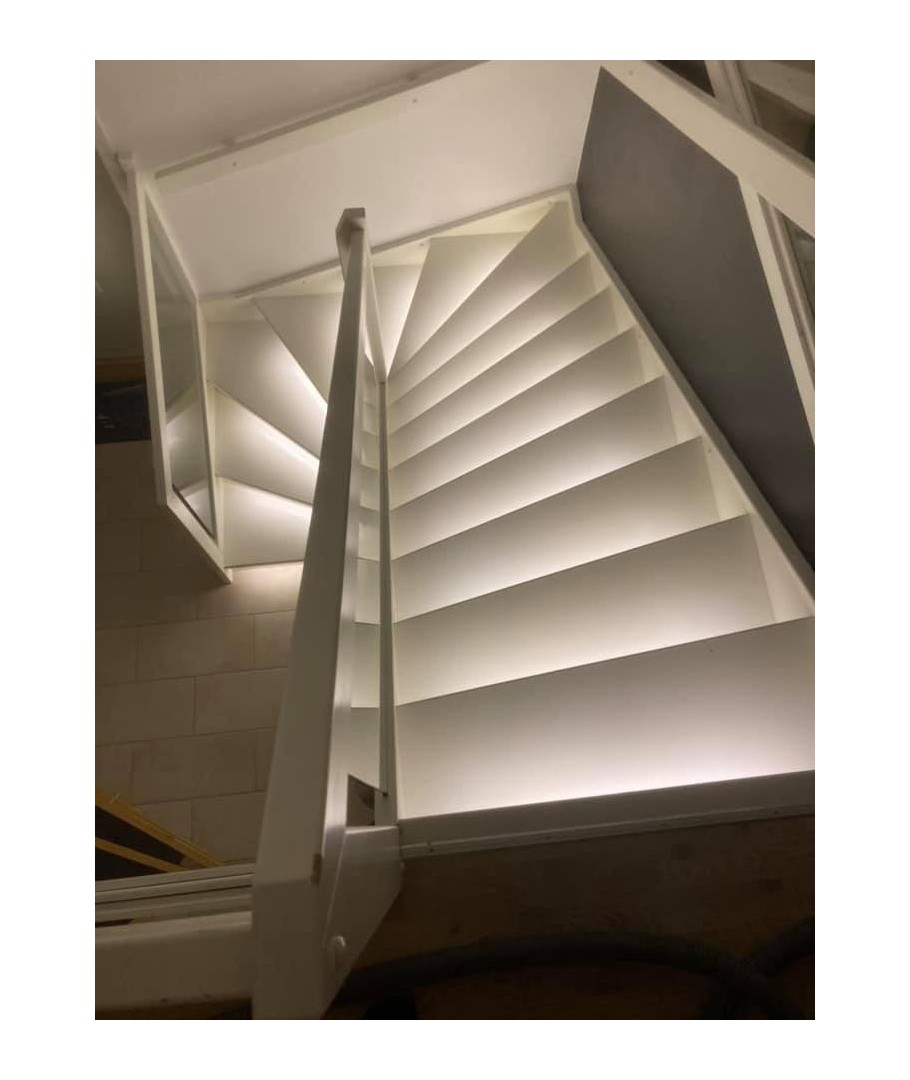 Elegant løsning, som giver et hyggeligt indirekte og flot lys på din trappe.