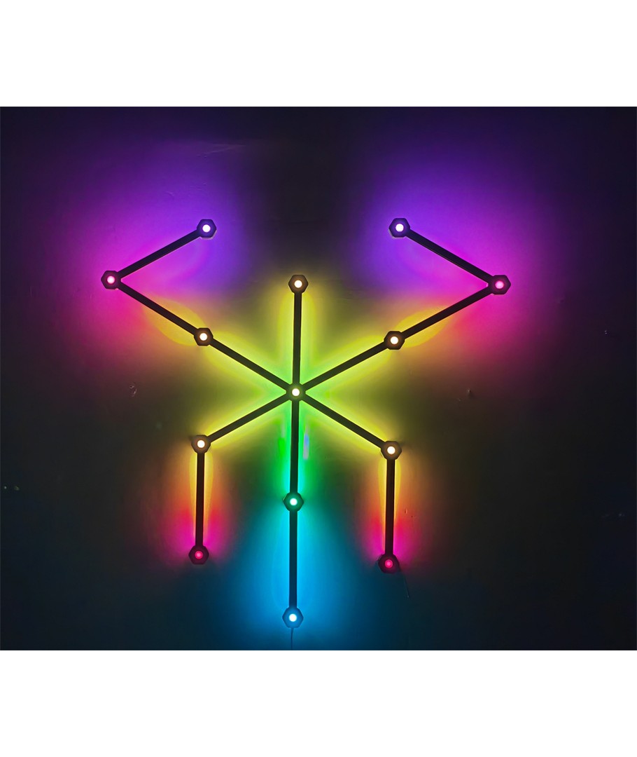 Oplev en ny dimension af stilfuld belysning med dette komplette Hexa-Light RGBIC sæt. Bestående af 9 vægmonterede lysskinner, giver dette sæt dig mulighed for at skabe en unik lyseffekt i ethvert rum.