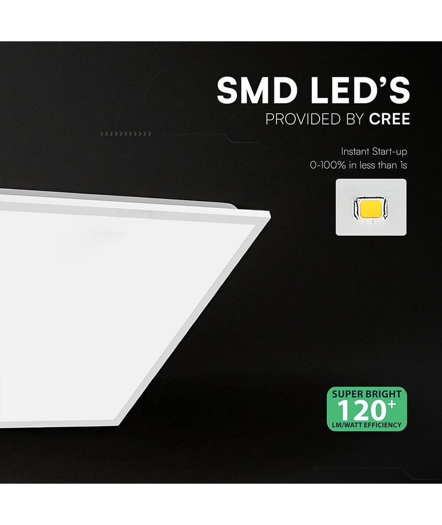 Effektivt og driftssikkert bagbelyst 60x60 LED panel med CREE LED chip, der leverer kraftigt og ensartet lys til både erhverv og private. Med et højt lysudbytte på 120 lm/W får du maksimal belysning med minimalt strømforbrug. Et stilrent panel, der passer perfekt ind i moderne loftløsninger.