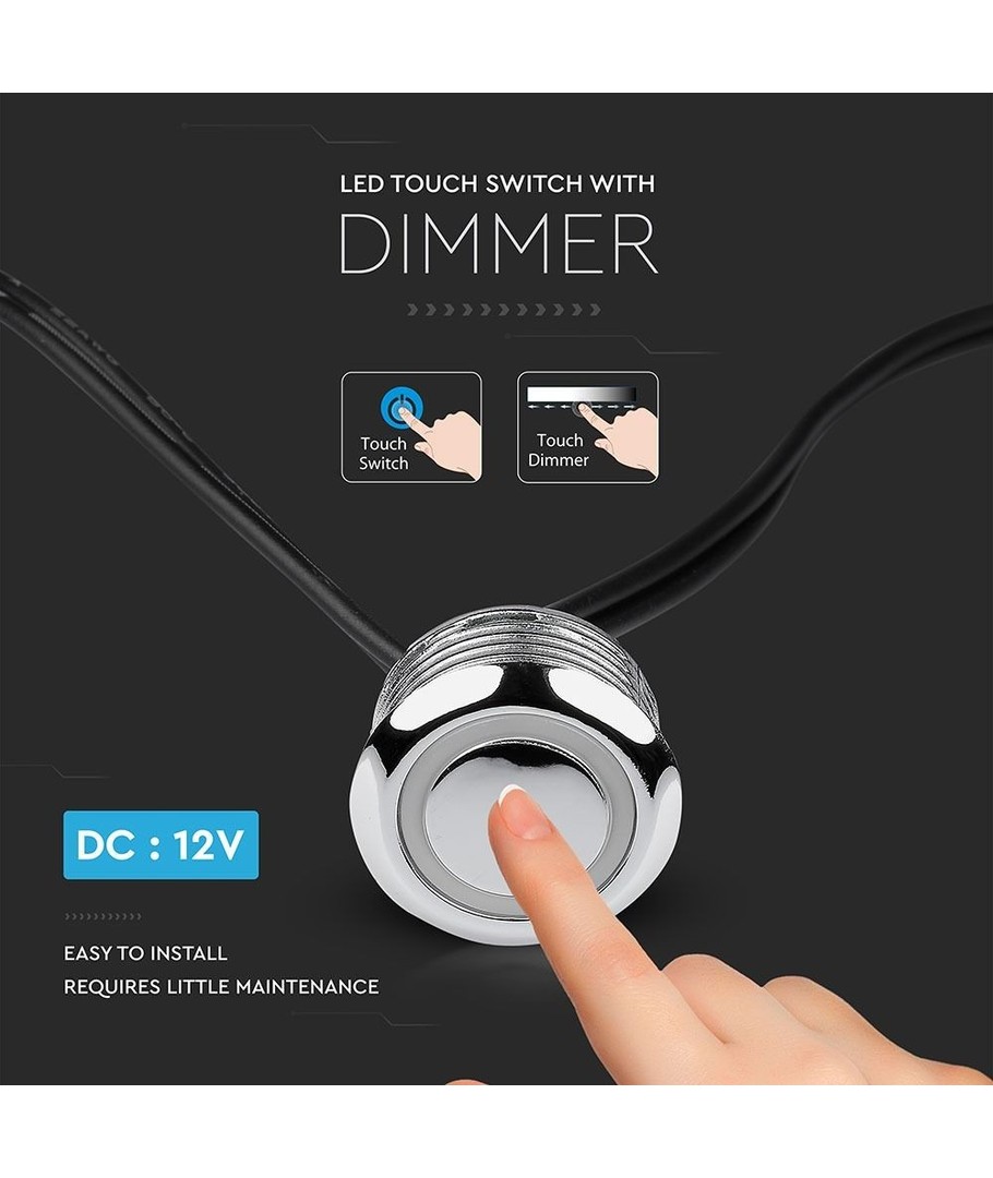 Tændes og slukkes ved kort tryk på touchknappen, samt dæmper ved længere tryk.
