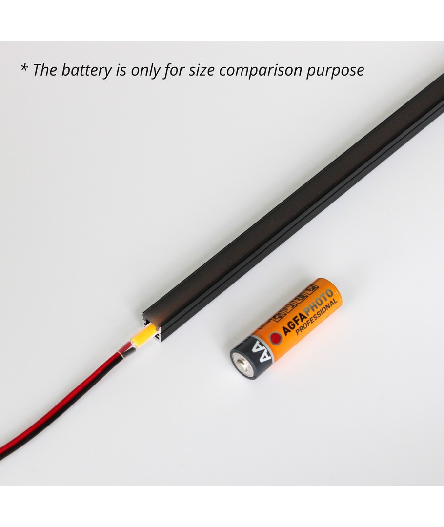 • 2 x 120cm Sort aluminiumsprofil inkl. deksel, endestykker og monteringsklips.