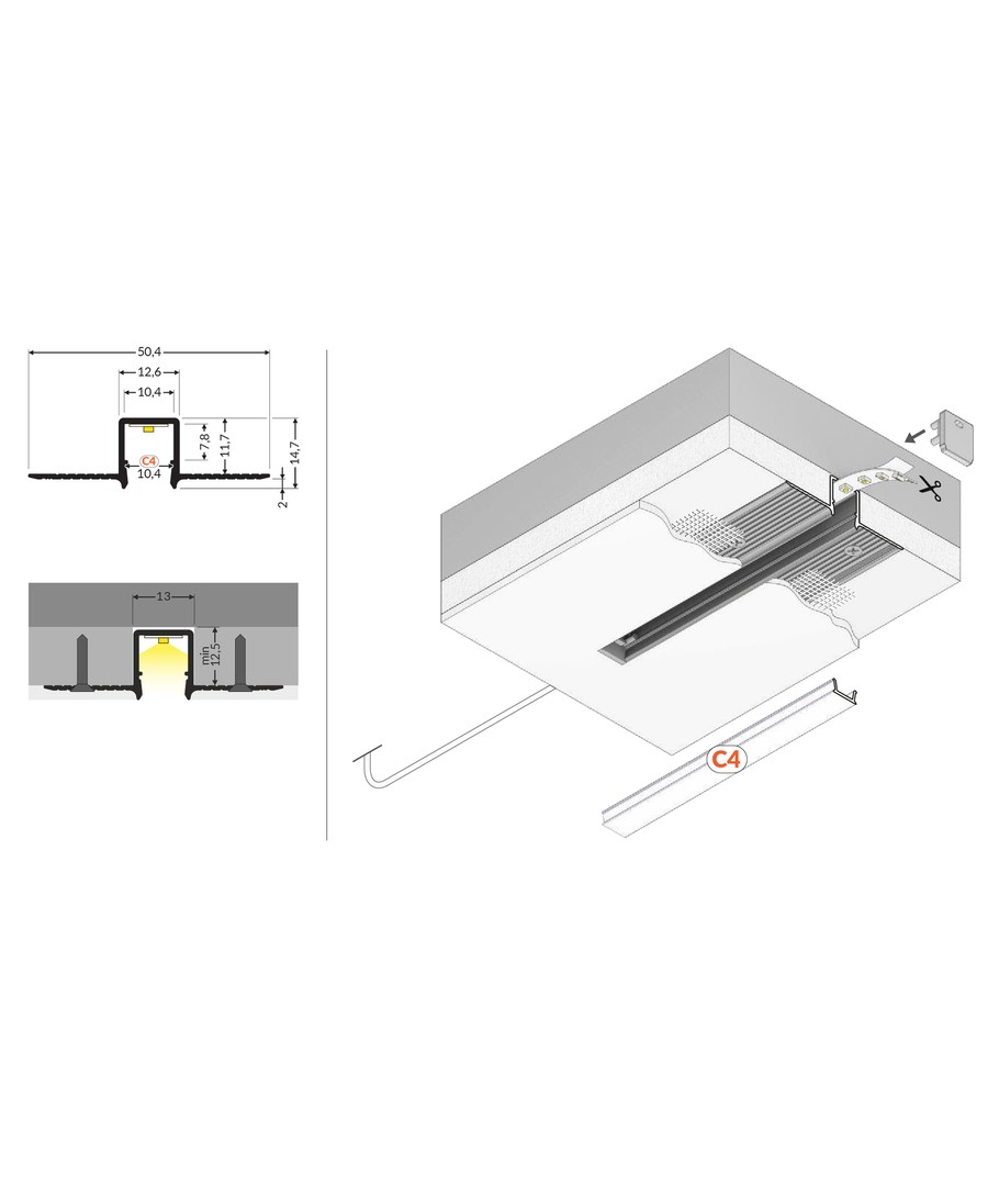 1m aluprofil HIDE10 C4 er en alsidig anodiseret LED-skinne til indspartling i vægge og lofter.
