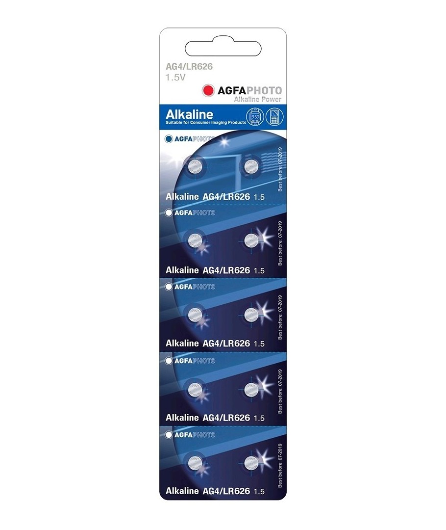 10 stk LR66/AG4 knapcellebatteri fra AgfaPhoto.Betegnelser: SR626SW, SR66, SR626, SB-AW, 280-39, BA, V377, D37, AG4Bruges til bl.a. ure, mindre legetøj osv.
