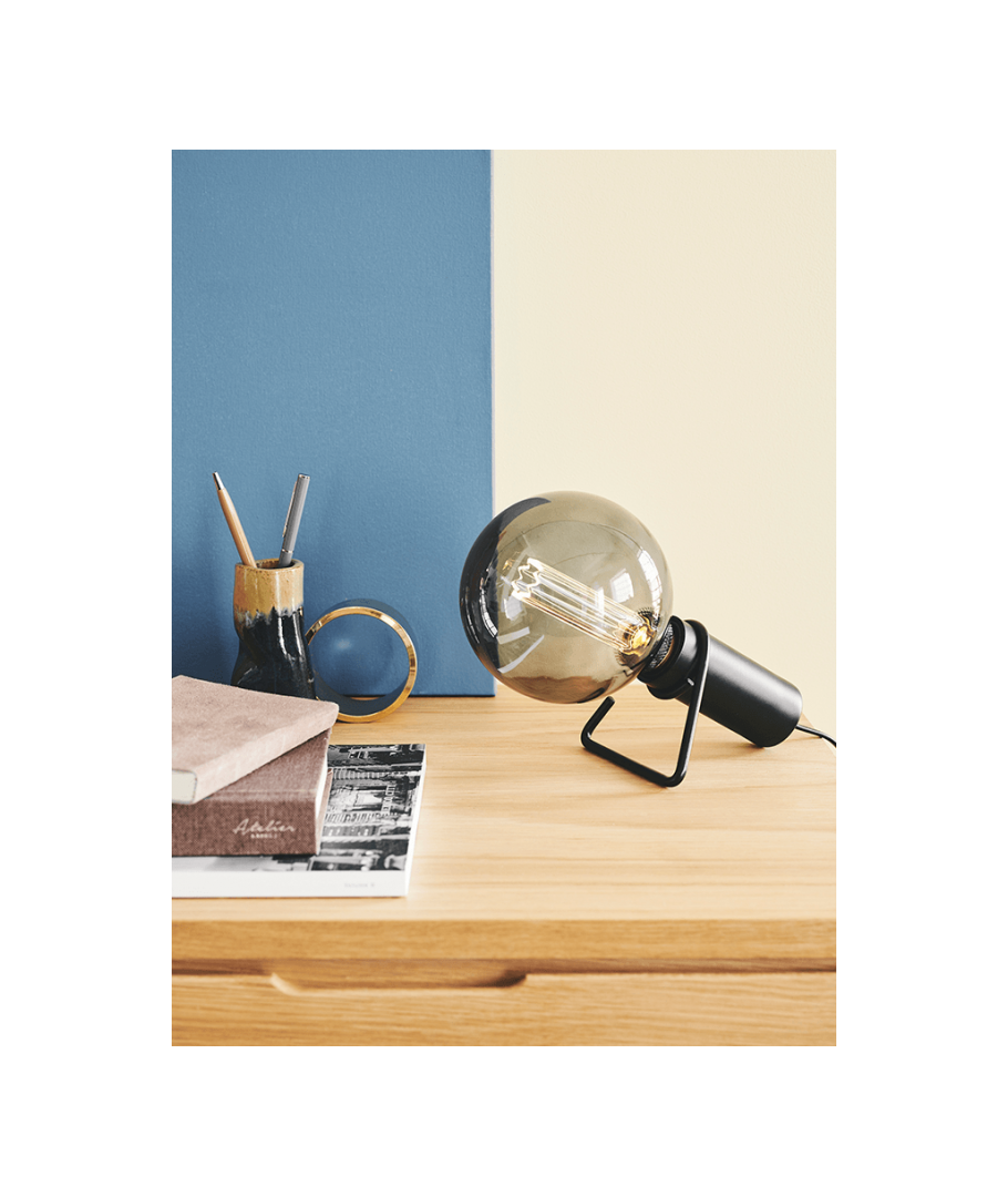 Selve lampen er med E27 fatning findes i 2 farver, sort og antik Messing. Enkeltheden lykkedes det at bevare, således at selve "kroppen" hvorfra fatningen er monteret, med foden der er monteret, bruges til at vinkle lampen når den er placeret på et bord. Foden som er en massiv metal bøjle, fastholdes med en omløberring ligeledes i massiv aluminium. Samme system benytte når den bruges til væggen. Dertil monteres blot det medfølgende beslag, jævnført anvisningen. Ønsker man tredje løsning afmonteres foden og herfra har man så et fatningssæt, hvorfra der kan benyttes et hav af muligheder med COLORS Deko-LED lyskilder fra Halo Design sortimentet.