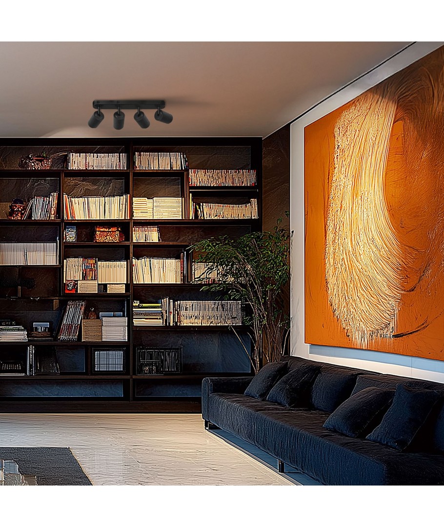 Samlet set er denne loftlampe med 4 spots den perfekte kombination af stil og funktionalitet, der forbedrer dit interiør med et personligt og målrettet lysdesign.