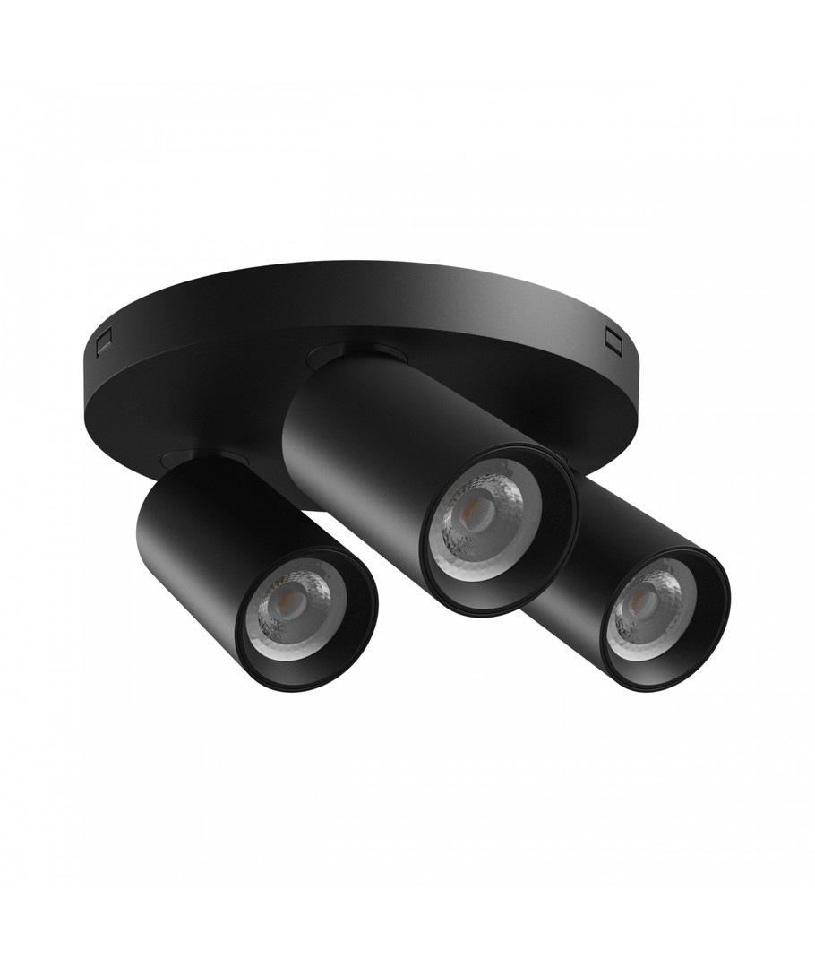 Den runda taklampan med 3 spots är en elegant och funktionell lösning för att belysa inomhusmiljöer. Designad i svart aluminium passar den perfekt i moderna inredningar.