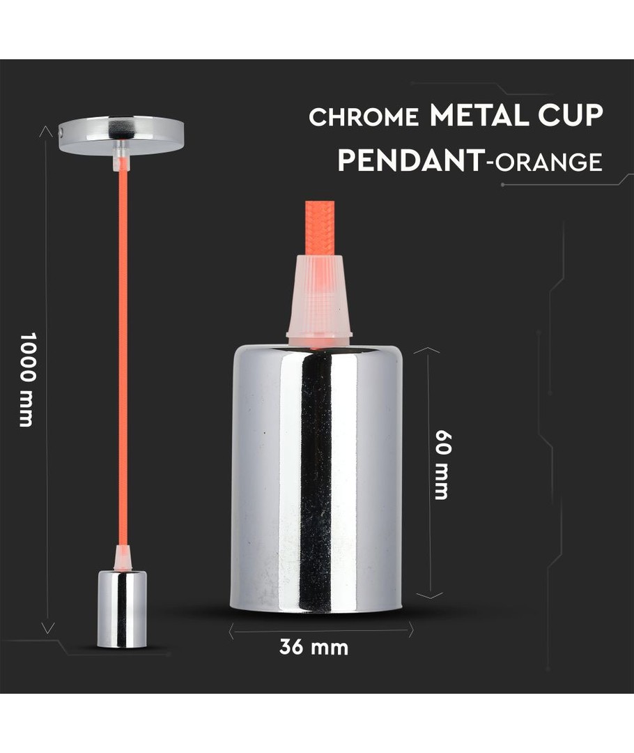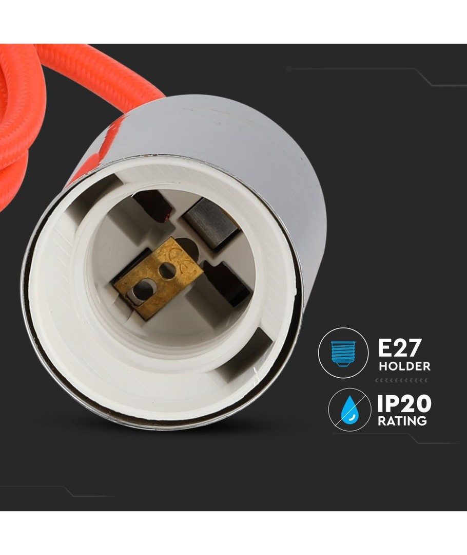 E27 pendelophæng i krom med orange ledning - Ø3,6 cm, uden lyskilde, IP20 V-TAC Udvid