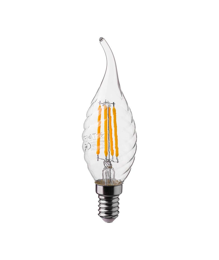 Pæren er designet med en dekorativ twist form, der efterligner en flamme, hvilket giver en elegant touch til enhver lysekrone eller lampe med en kertepære-stil. Perfekt til dem, der ønsker at kombinere tidløs stil med moderne lyskvalitet.