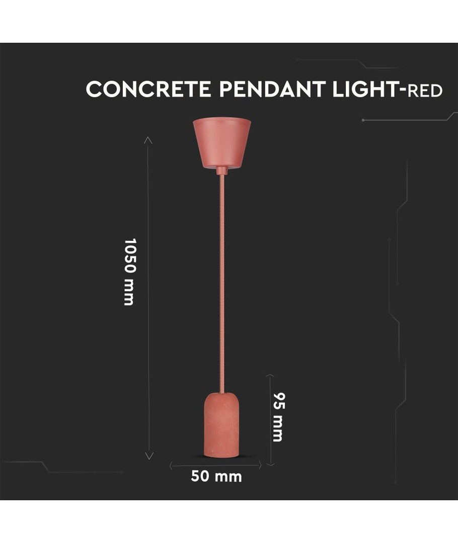 Rød beton pendellampe, E27 fatning - Rund, Ø5cm, uden lyskilde, IP20 indendørs V-TAC Udvid