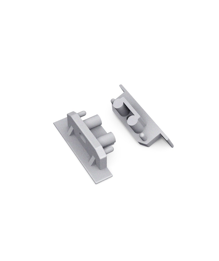 Endestykke GROOVE10 GEN2 SQ er et sølvfarvet afslutningsstykke til profiler, designet med et hul for nem installation og fleksibilitet.