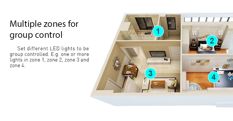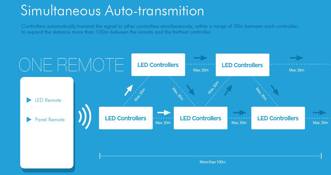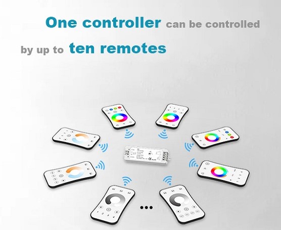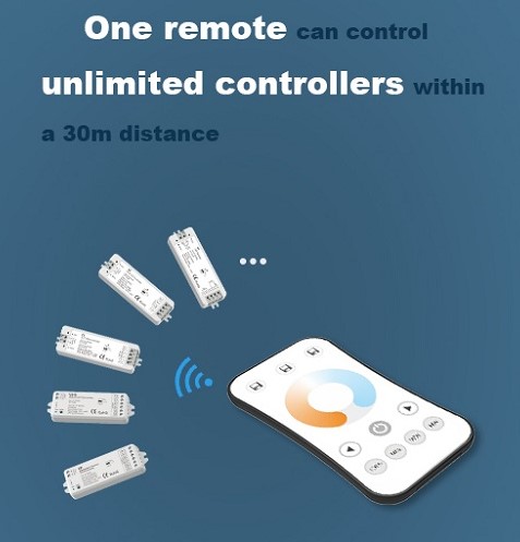 Fjernbetjeningen kan styre flere rWave dæmpbare controllere.