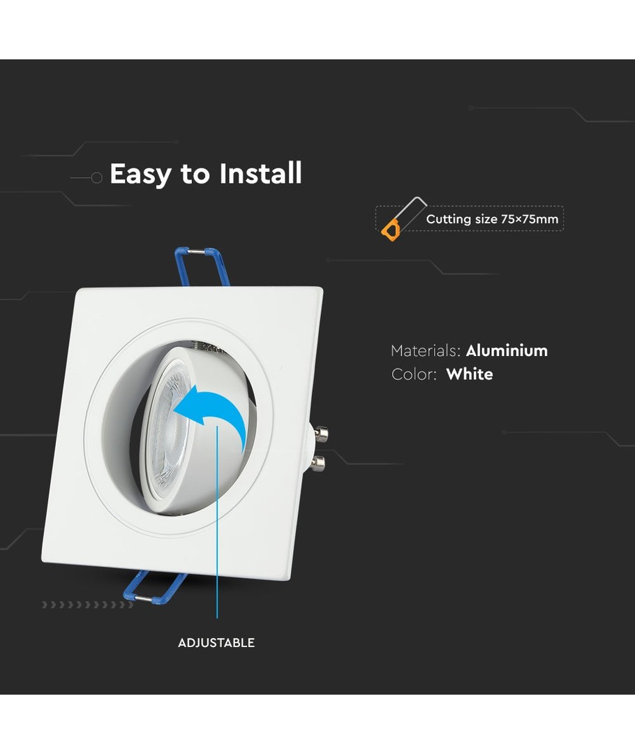 Uden lyskilde, IP20, Hul: 7,4x7,4 cm, Mål: 9,9x9,9cm