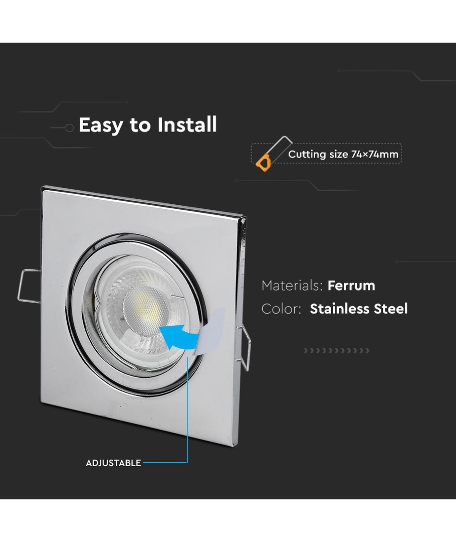Den GU10/MR16 Firkantet downlight er designet til stilfuld og effektiv belysning i dit hjem eller kontor, uden medfølgende lyskilde for fleksibilitet.