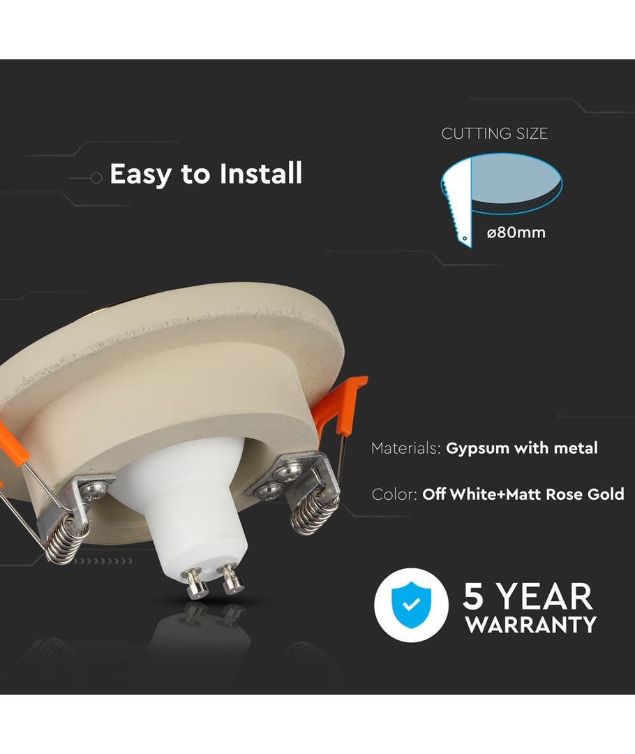 GU10 Gips Metal - Offwhite med Mat Rosaguld Bund-Rund V-TAC Udvid