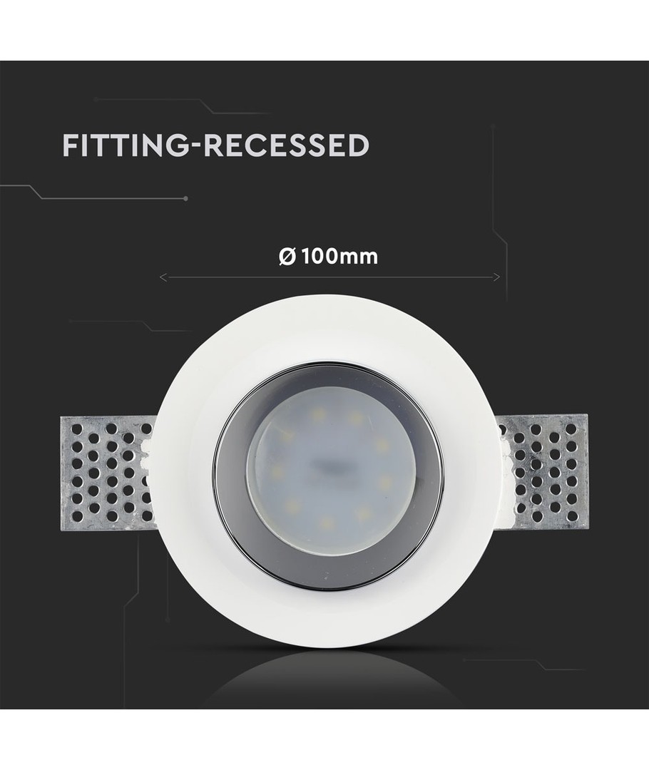 GU10 indbygningsspot i gips - Rund, hvid/krom, Ø10cm, IP20, uden lyskilde V-TAC Udvid