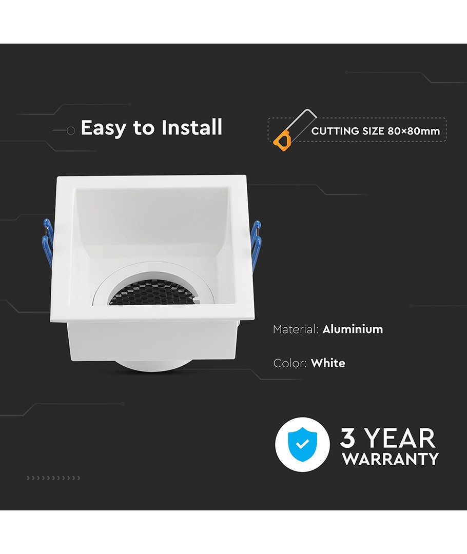 Uden lyskilde, IP20, Hul: 7,4x7,4 cm, Mål: 9,9x9,9cm