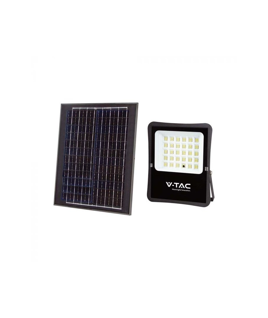 V-Tac 20W LED Solcelle projektør - Sort, en praktisk og energieffektiv løsning til udendørs belysning. Denne projektør inkluderer en solcelle og fjernbetjening og er designet til at modstå alle vejrforhold med sin IP65 vurdering. Den har også en praktisk timerfunktion, der giver dig mulighed for at indstille den til at slukke automatisk efter en bestemt periode. Med en fuld opladningstid på kun 4 timer kan denne projektør levere 8 timers lys. Den leveres også med en 5 meter lang ledning, der giver dig fleksibilitet til at placere den, hvor du har brug for den.