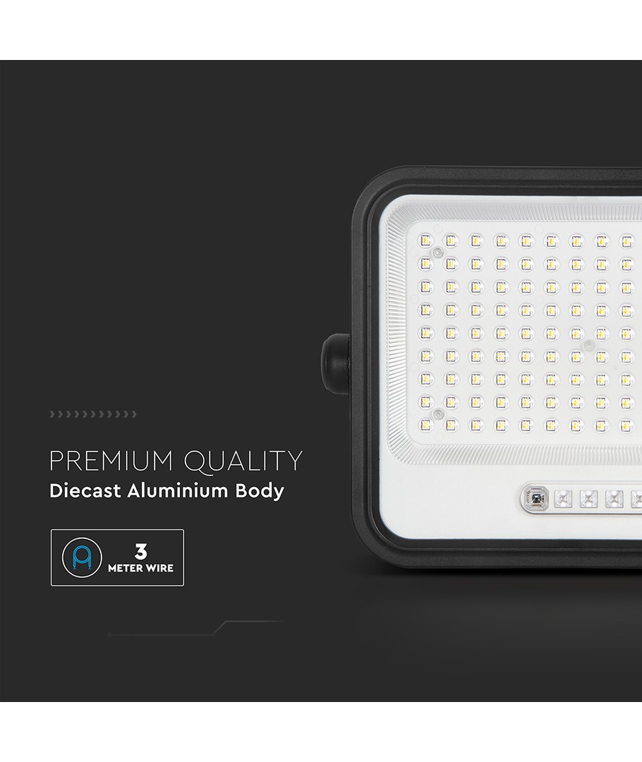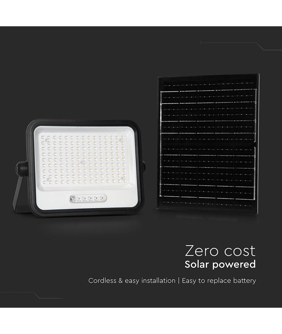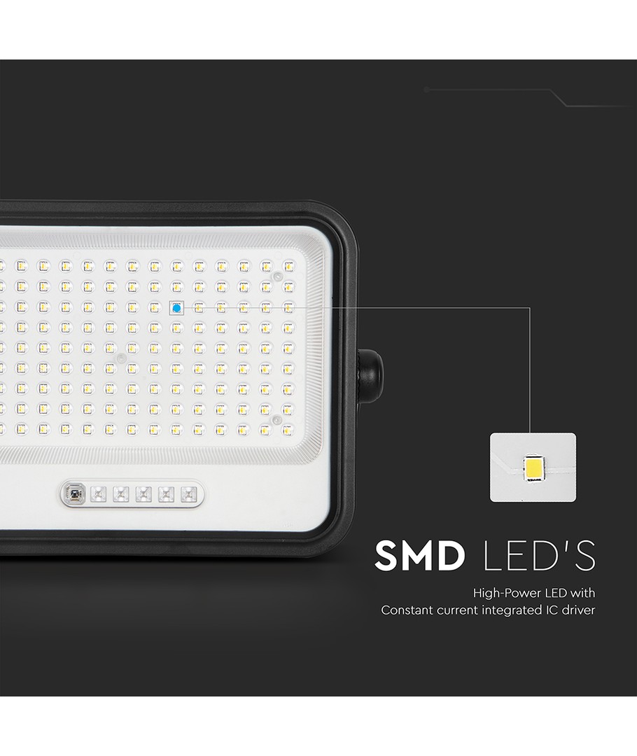 Oplev kraftfuld belysning med denne 300W LED projektør med solpanel, der leverer en imponerende lysstyrke på 2400 lumens. Den er skabt til at imødekomme behovet for klar og omfattende belysning, både til private og kommercielle formål.
