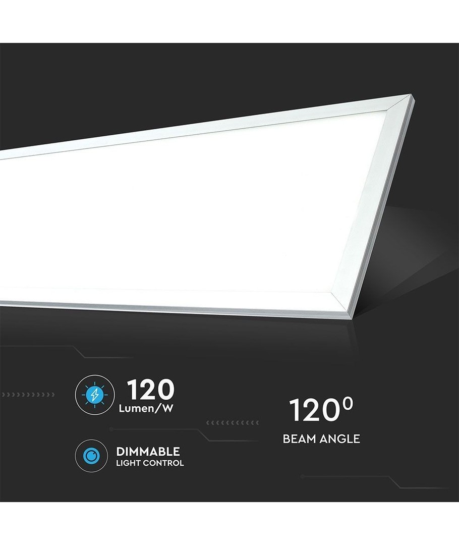 Le panneau LED moderne V-Tac 120x30 de 29W est conçu pour remplacer les luminaires traditionnels de 150W. Avec une connexion à une alimentation 230V, ce panneau LED assure une installation simple et un éclairage économe en énergie.