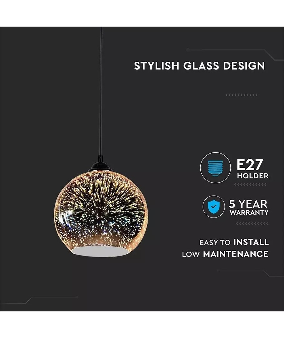 Améliorez votre espace avec une lampe qui combine design moderne et fonctionnalité. La suspension en verre 3D V-Tac élégante offre une expérience d'éclairage unique, parfaitement adaptée à la maison comme au bureau.