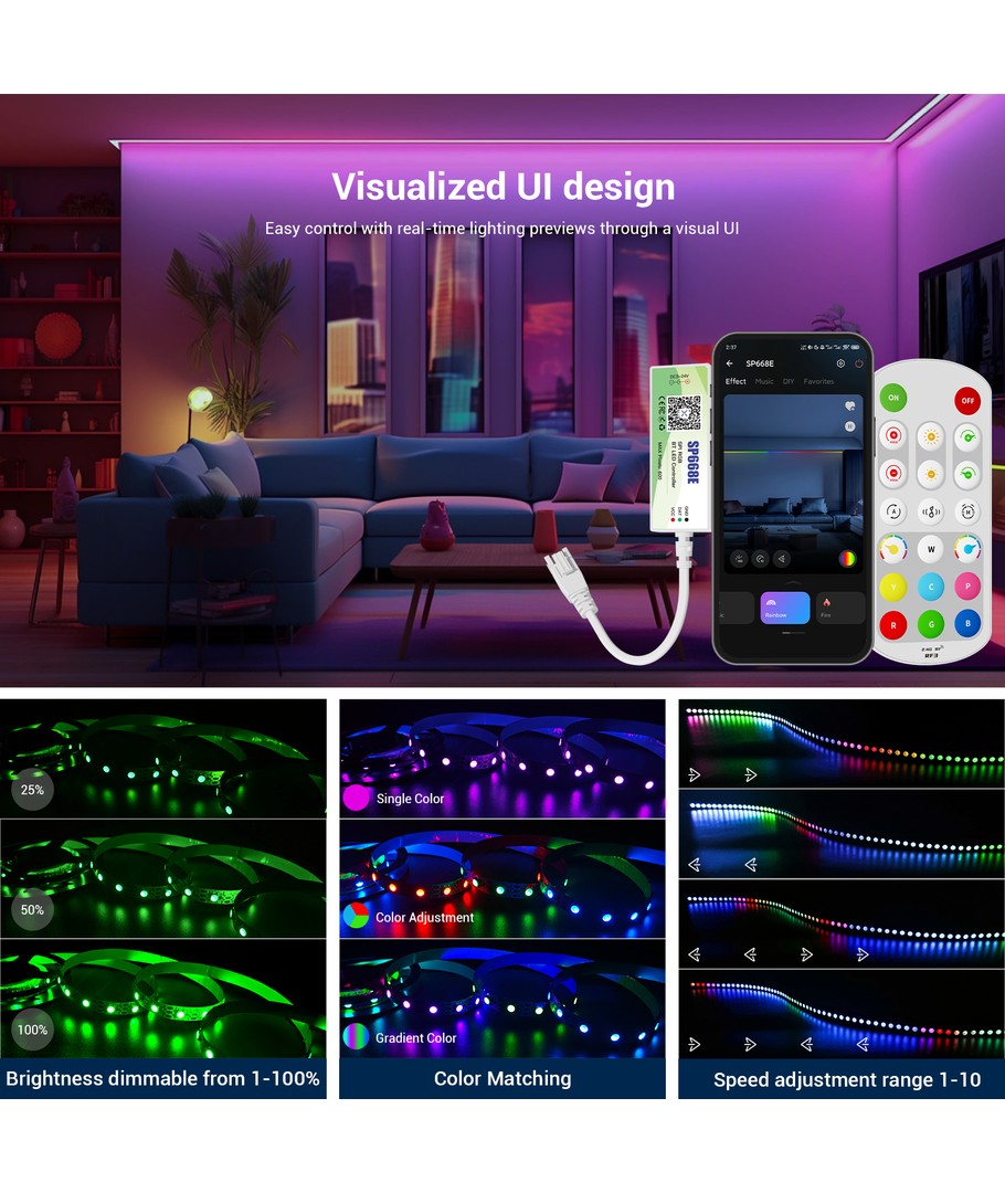 Peut contrôler jusqu'à 600 sections RGBIC maximum.