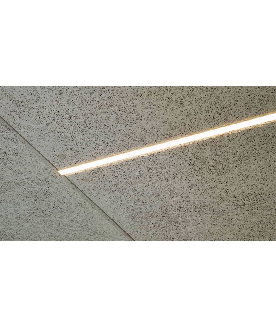 Avec des dimensions de 55 x 25 x 600 mm, ce kit akustilight est suffisamment subtil pour une installation discrète, tout en ayant une présence visuelle audacieuse. L'intégration affleurante assure une finition élégante qui se fond dans le plafond de manière minimaliste.
