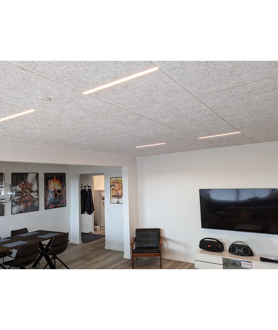 Ce produit fait partie de la série Akustilight. La meilleure et la plus complète solution d'éclairage pour Troldtekt, Fibrotech et des plaques de plafond similaires.