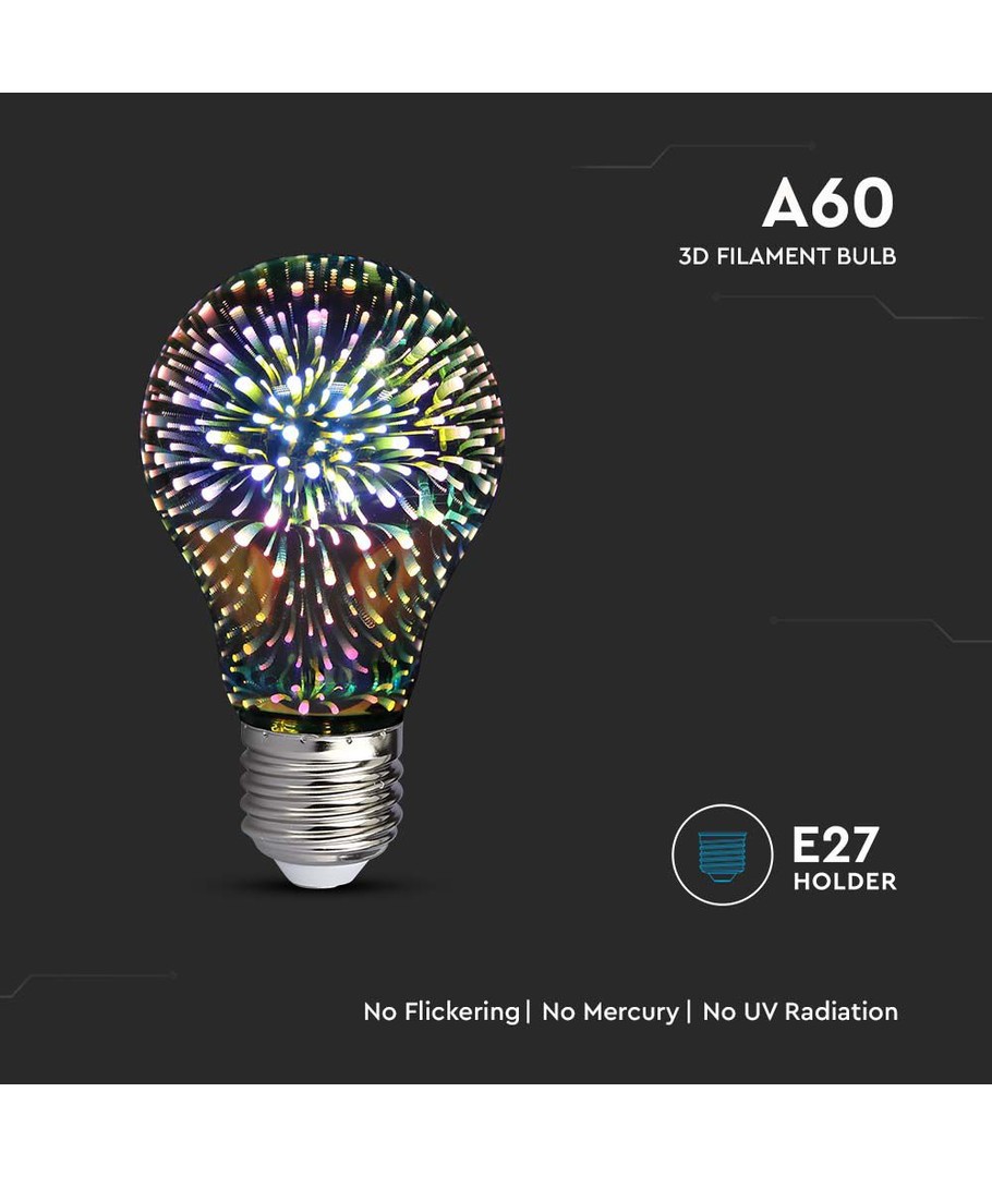 Découvrez un éclairage enchanteur avec l'ampoule LED 3D 3W E27, qui crée un effet étoilé unique dans votre espace.