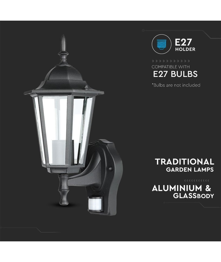 Applique murale noire classique avec capteur intégré.