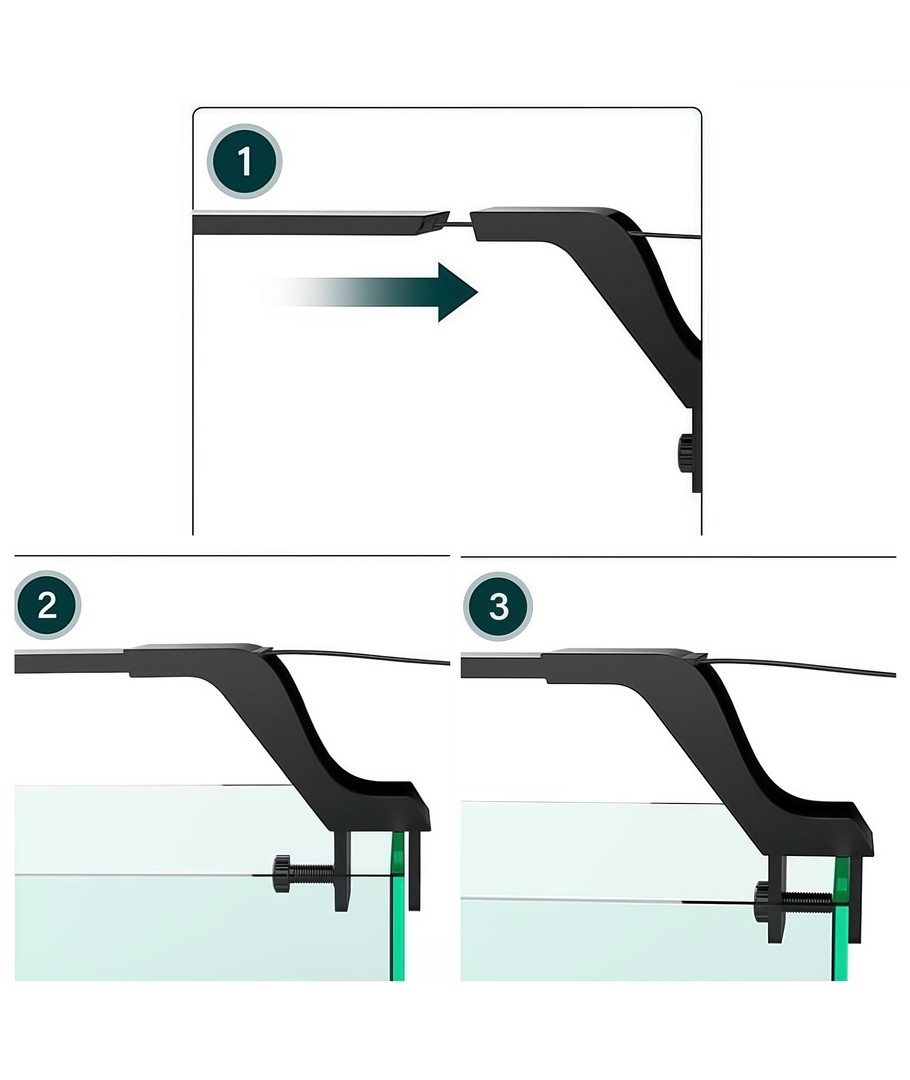 Se monte facilement sur le bord de l'aquarium, convient pour une épaisseur de verre jusqu'à 24 mm.