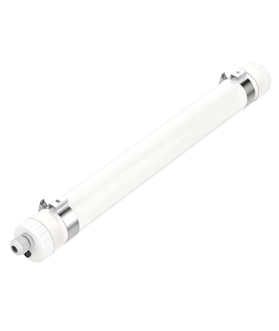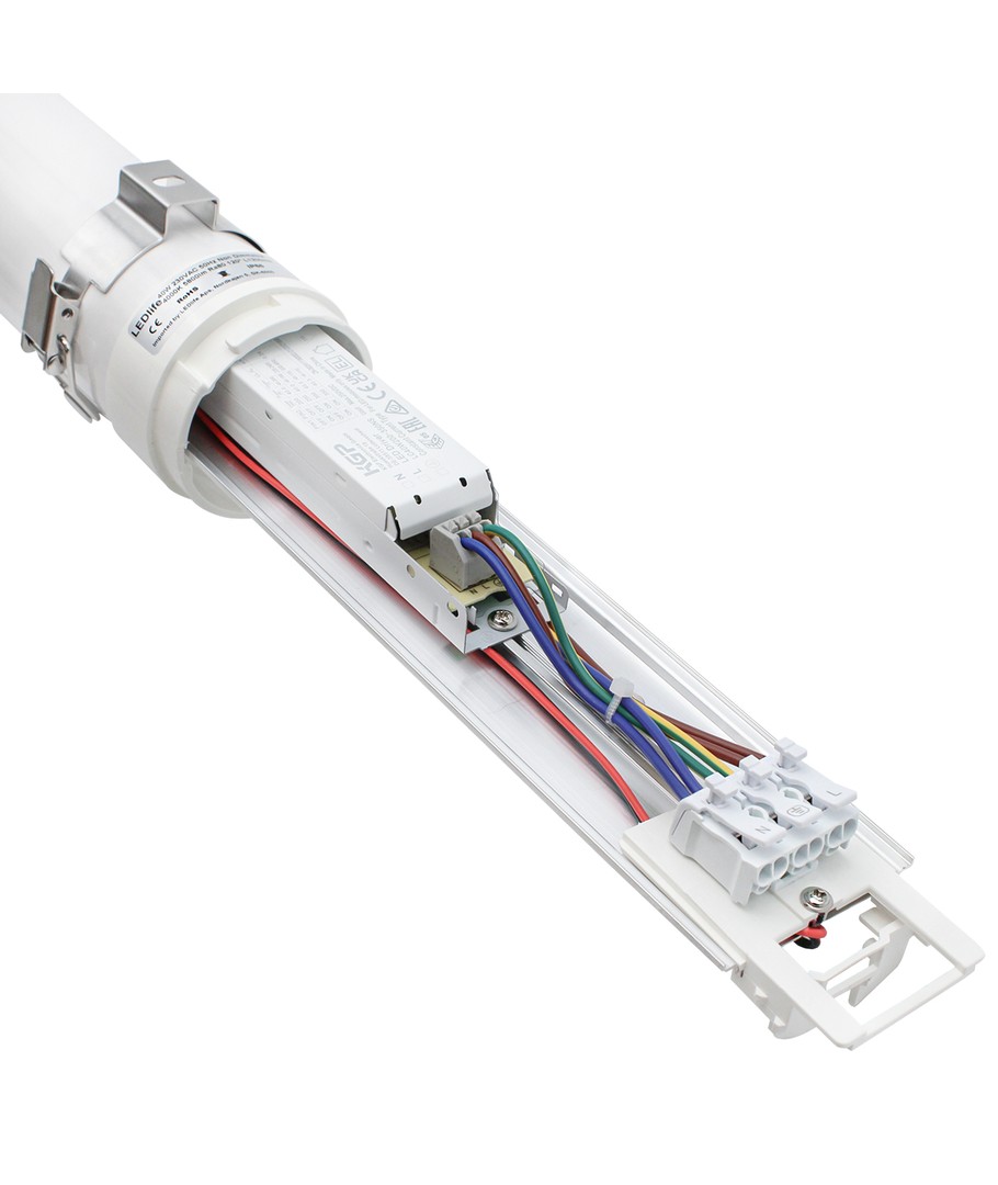 Le luminaire est livré avec une source lumineuse intégrée et est entièrement câblé, ce qui facilite et accélère l'installation. Avec des dimensions de 1200 x Ø61 mm, il est compact et facile à manipuler lors de l'installation.