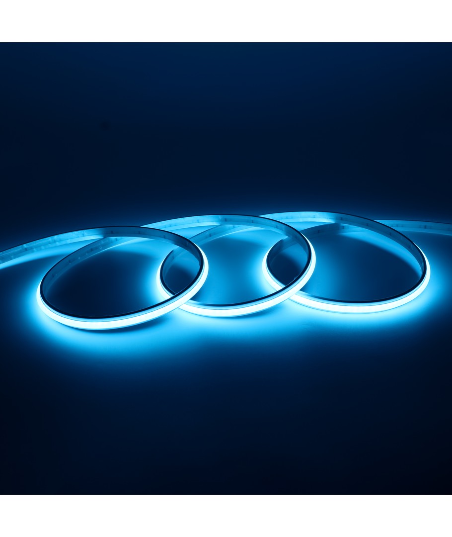 Bande LED COB bleu clair monochrome avec 240 LED par mètre.