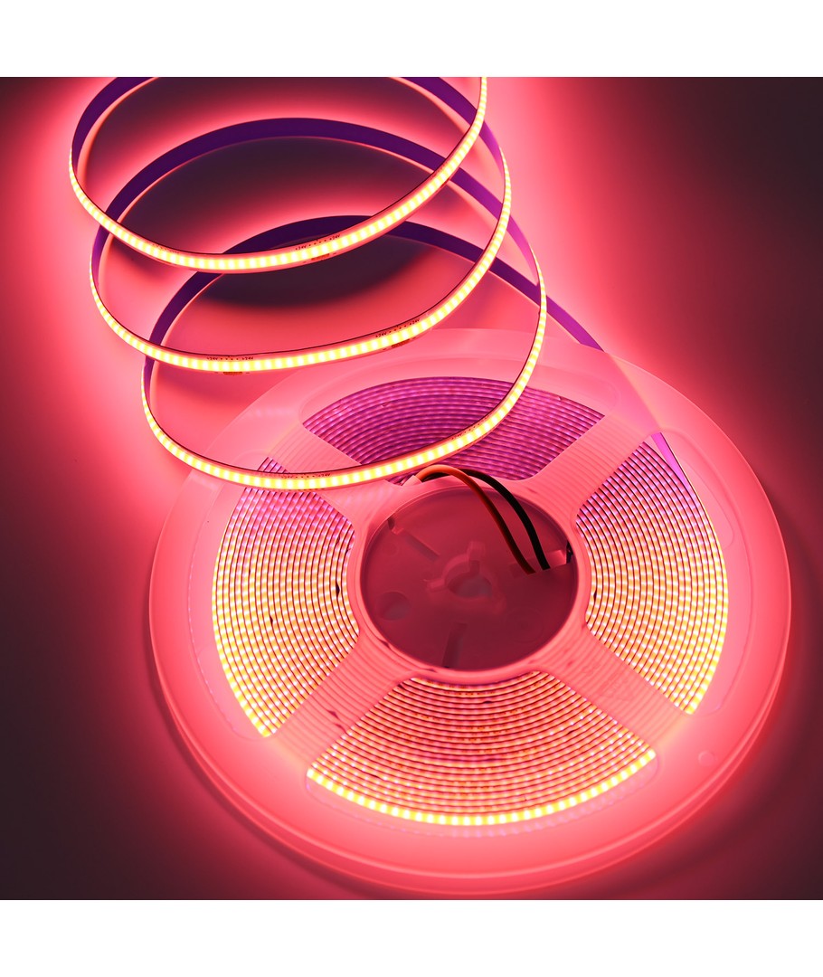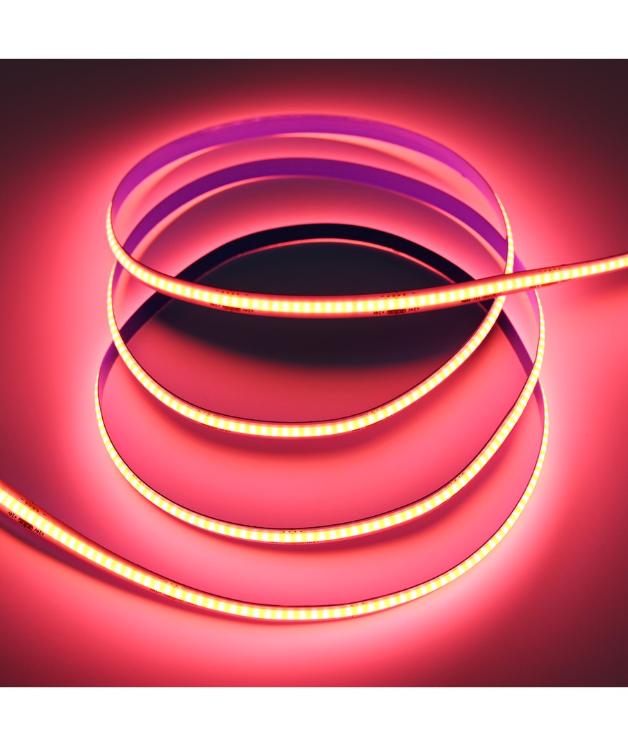 Ruban LED COB rose monochrome avec 320 LED par mètre.