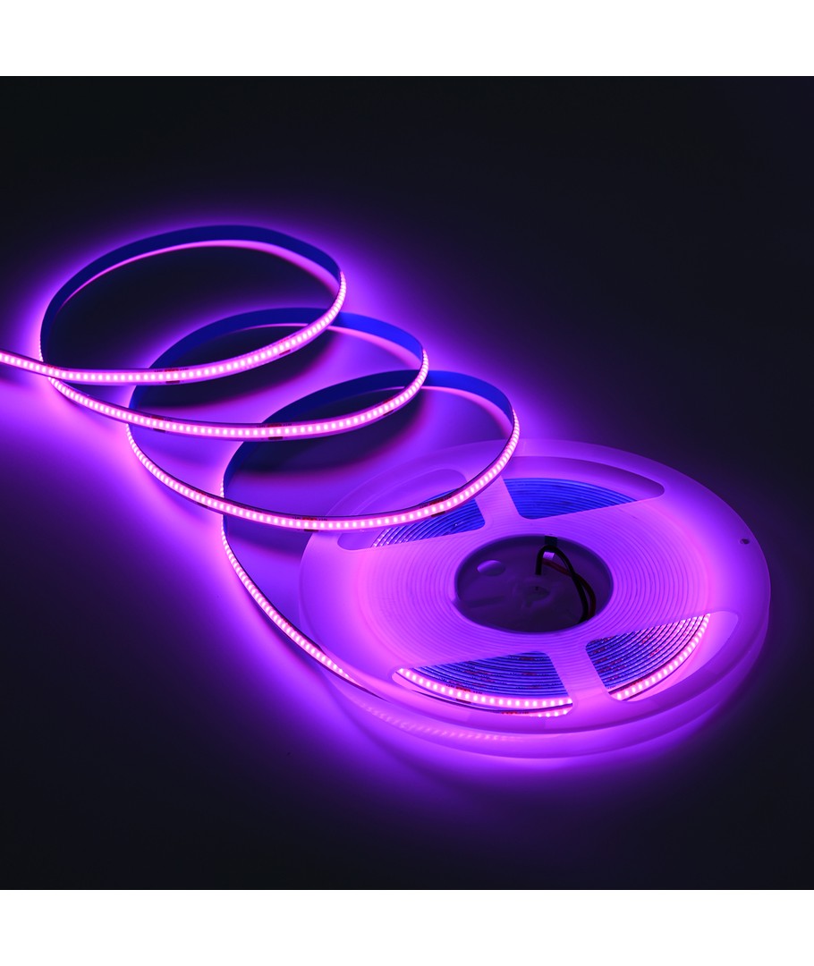 Ruban LED COB rose monochrome avec 320 LED par mètre.