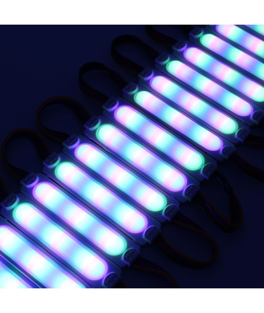 Ces modules LED avancés sont conçus pour ajouter des solutions d'éclairage colorées et dynamiques tant pour les applications intérieures qu'extérieures. Que vous souhaitiez mettre en valeur des enseignes ou créer des solutions personnalisées, ces modules LED répondront à vos besoins avec aisance et style.