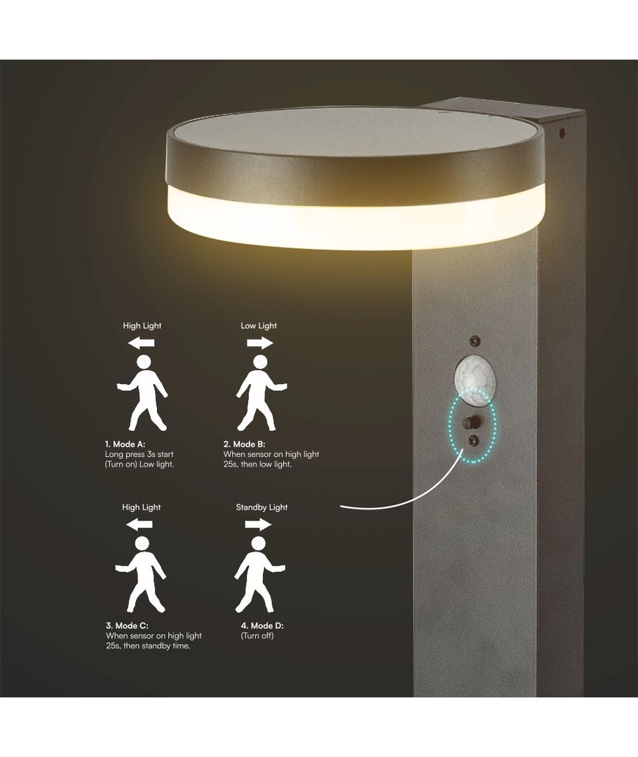 Avec un capteur PIR intégré, la lampe s'allume automatiquement en cas de mouvement, augmentant ainsi la sécurité tout en réduisant la consommation d'énergie. Cette solution solaire est économique et écologique, car elle dépend uniquement de l'énergie solaire pour fonctionner de manière optimale.