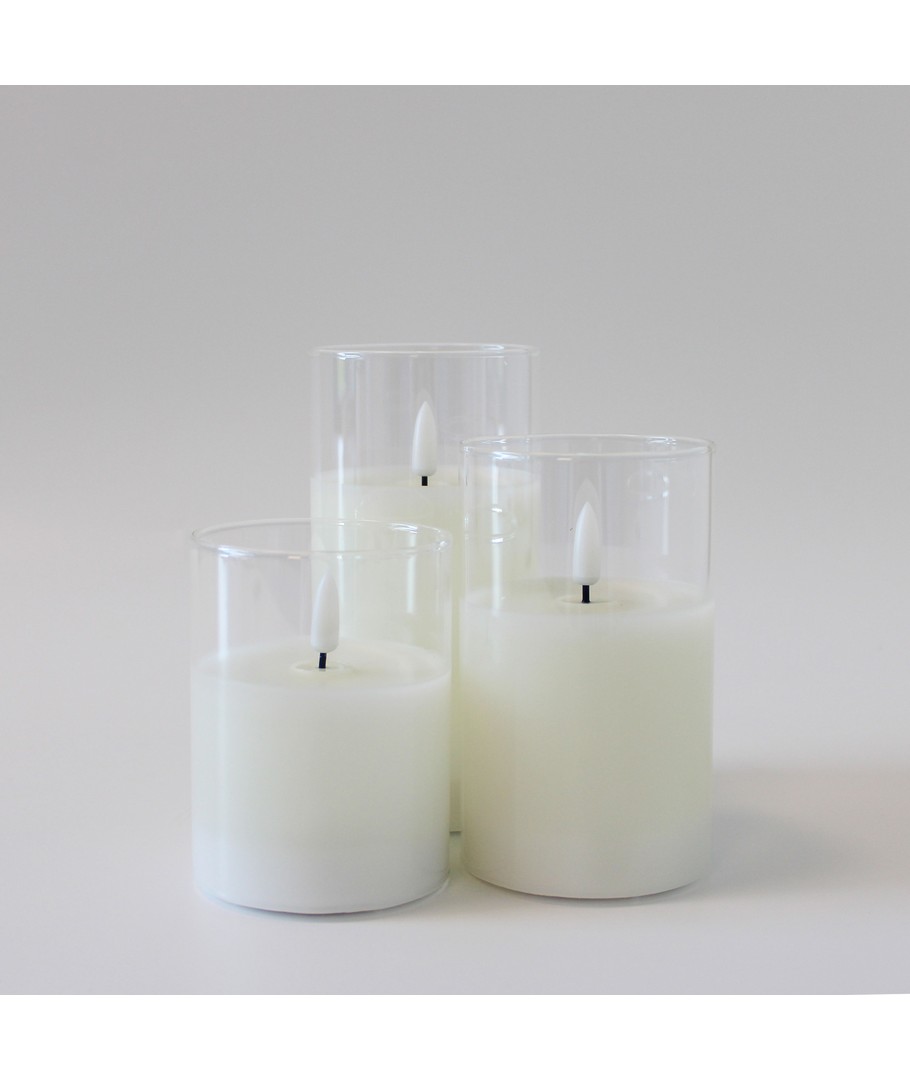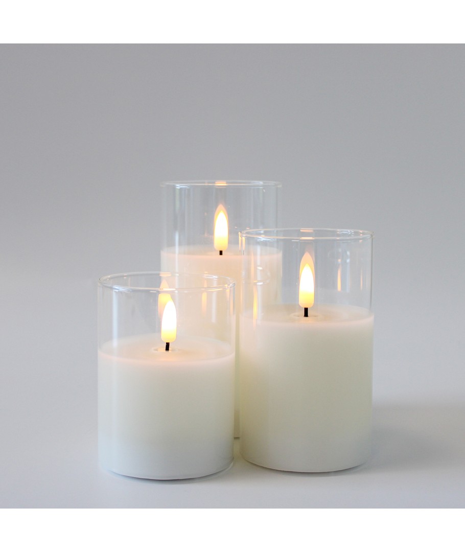 Découvrez l'atmosphère chaude et conviviale qu'apporte le lot de bougies LED en verre à votre intérieur. Ce lot de trois bougies vous permet de profiter du bel effet de flamme sans les désagréments de la fumée ou du risque d'incendie.