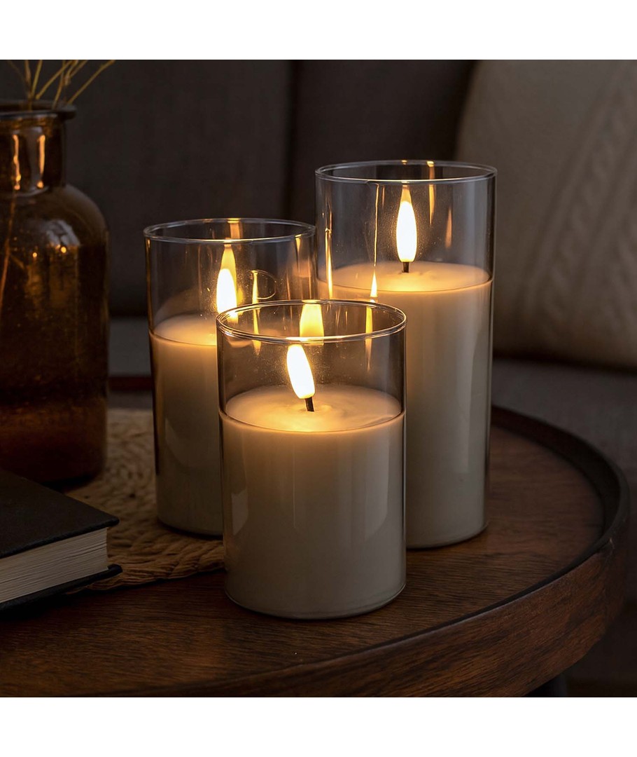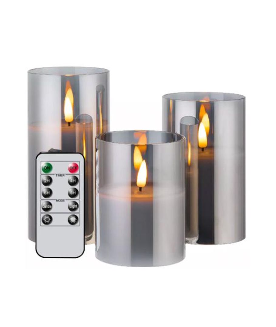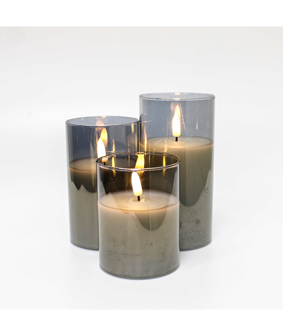 Découvrez la beauté captivante et l'ambiance des bougies à flamme réelle sans risque avec notre ensemble de bougies LED en verre teinté gris. Cet ensemble élégant comprend trois bougies de hauteurs différentes avec un effet de flamme réaliste, créant une atmosphère chaleureuse et accueillante.