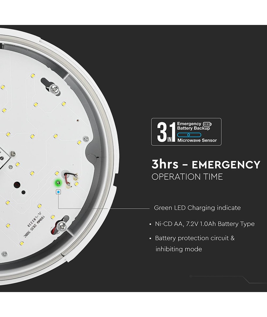 Lumière Coupole Ronde Pleine 10W - Batterie de Secours, Capteur, Puce Samsung, 4000K V-TAC Développer