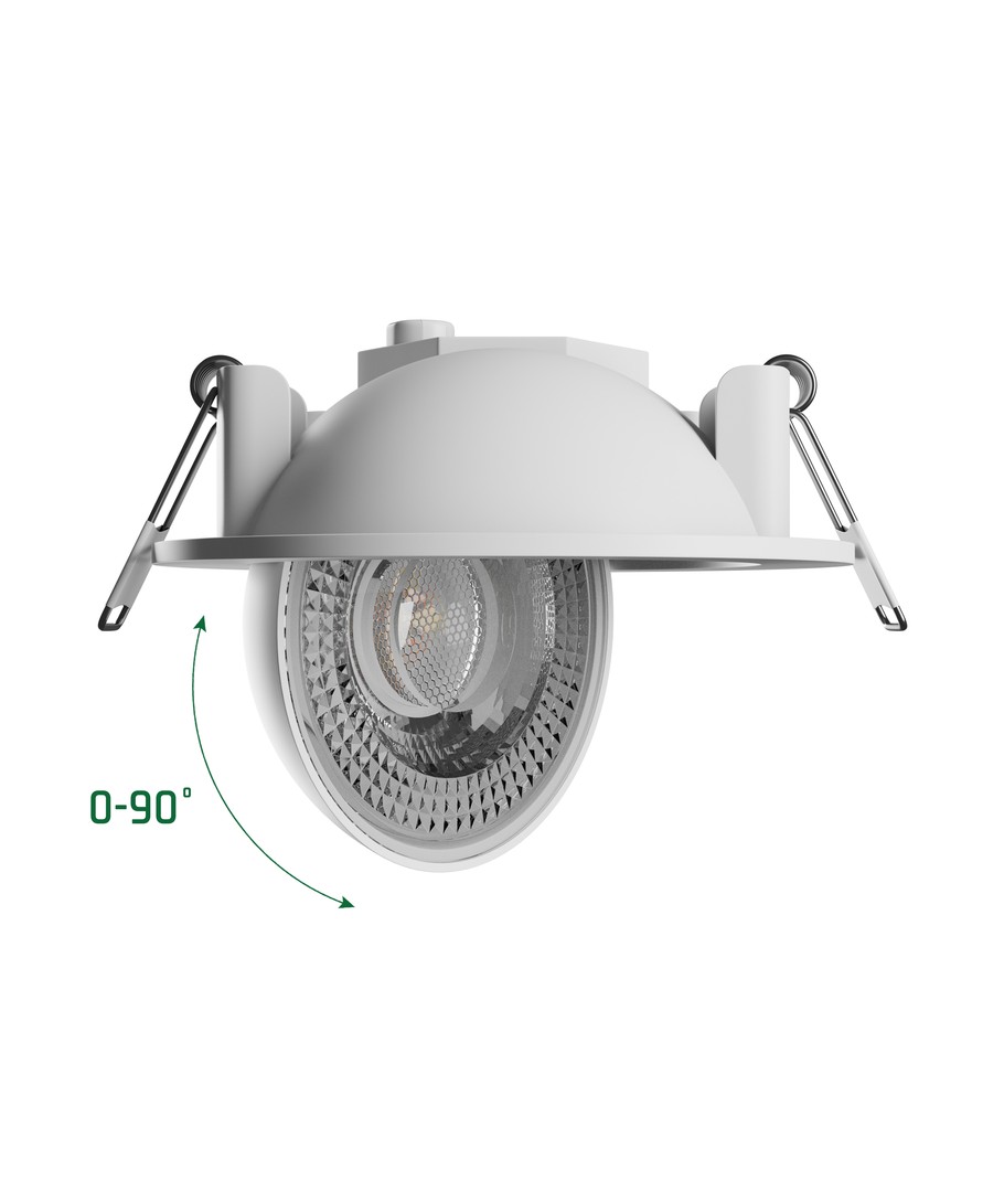 Avec des dimensions de Ø105 x 35 mm, ce downlight s'intègre discrètement dans tout intérieur. Il nécessite un diamètre de perçage de 90 mm pour l'installation, ce qui le rend adapté à de nombreux types de plafonds.