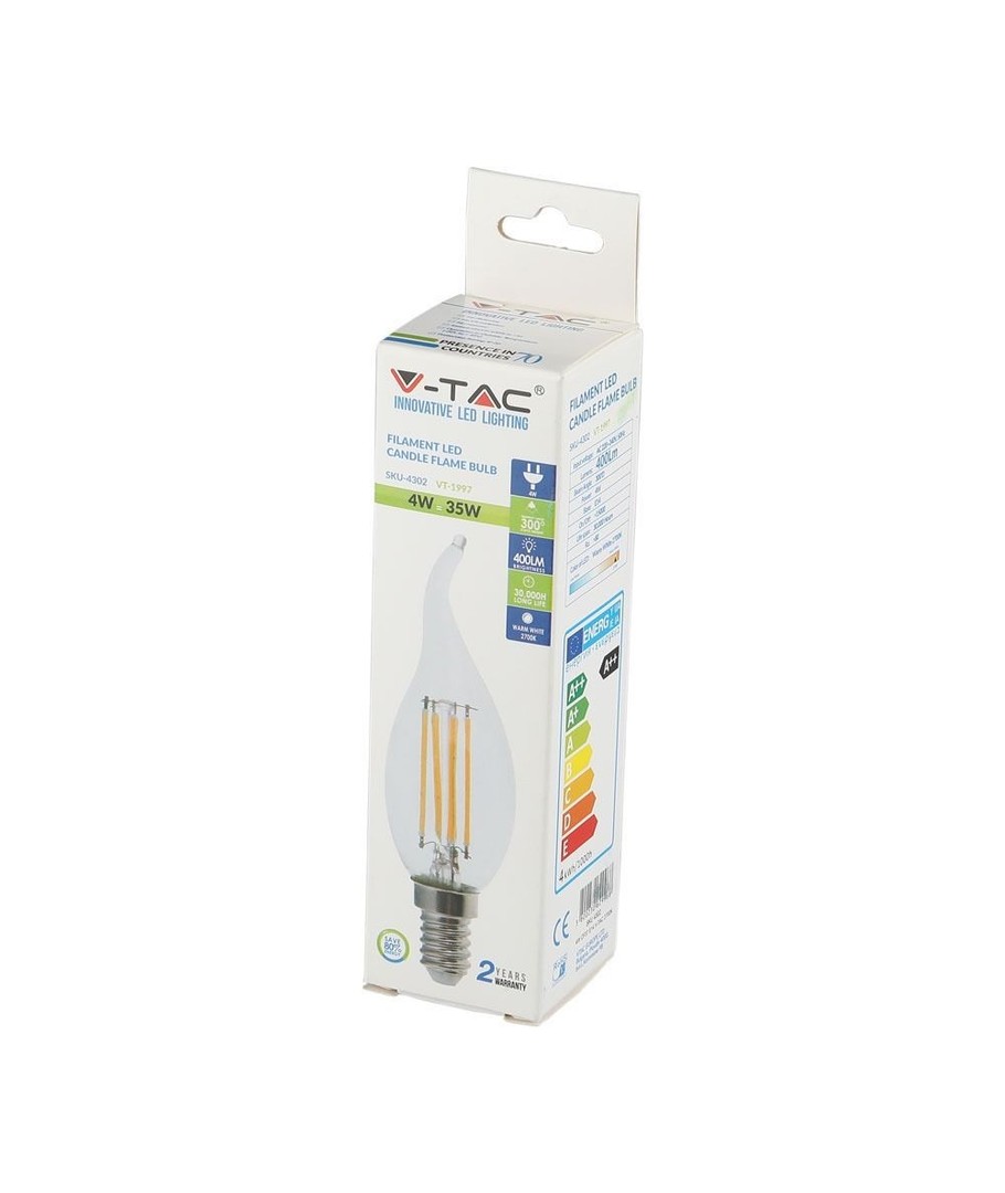Avec une luminosité de 400 lumens et une impressionnante diffusion de 300 degrés, cette ampoule LED flamme assure une répartition homogène de la lumière, remplissant la pièce d'une qualité lumineuse agréable. Elle possède un indice de rendu des couleurs (IRC) de 80-85, ce qui signifie que la lumière est naturelle et restitue toutes les couleurs de manière belle et authentique. Cela rend l'ampoule idéale pour la plupart des besoins d'éclairage.