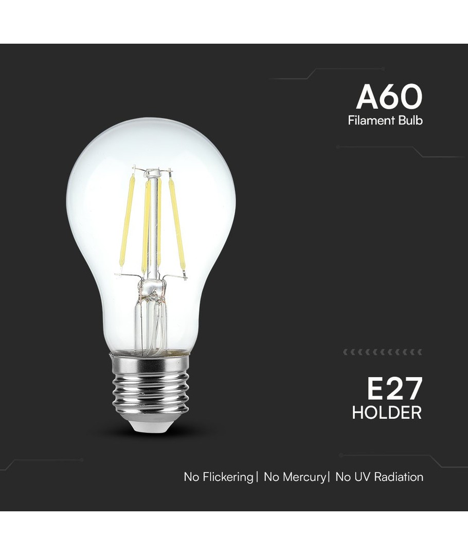 Ampoule filament V-Tac 4W E27 - 6500K, A60 est une source lumineuse écoénergétique qui combine la technologie LED moderne avec un design classique, parfaite pour la maison comme pour les professionnels.