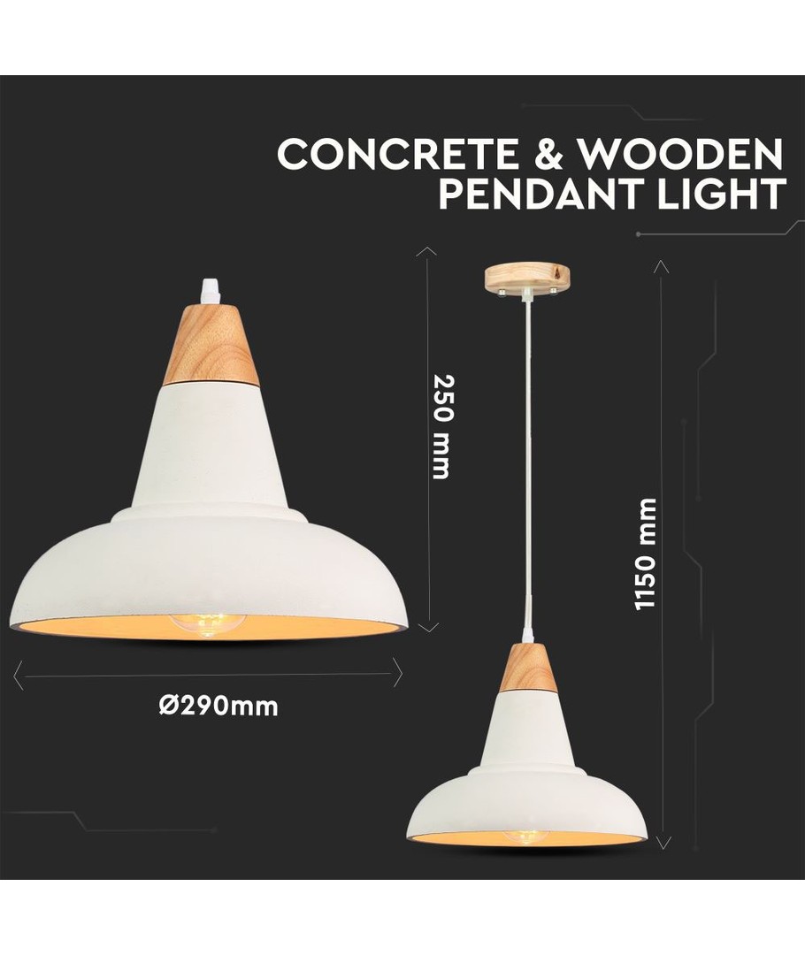 Lampe suspension E27 - Béton+Bois, Ø300 est une lampe élégante combinant béton et bois, adaptée aux intérieurs modernes.