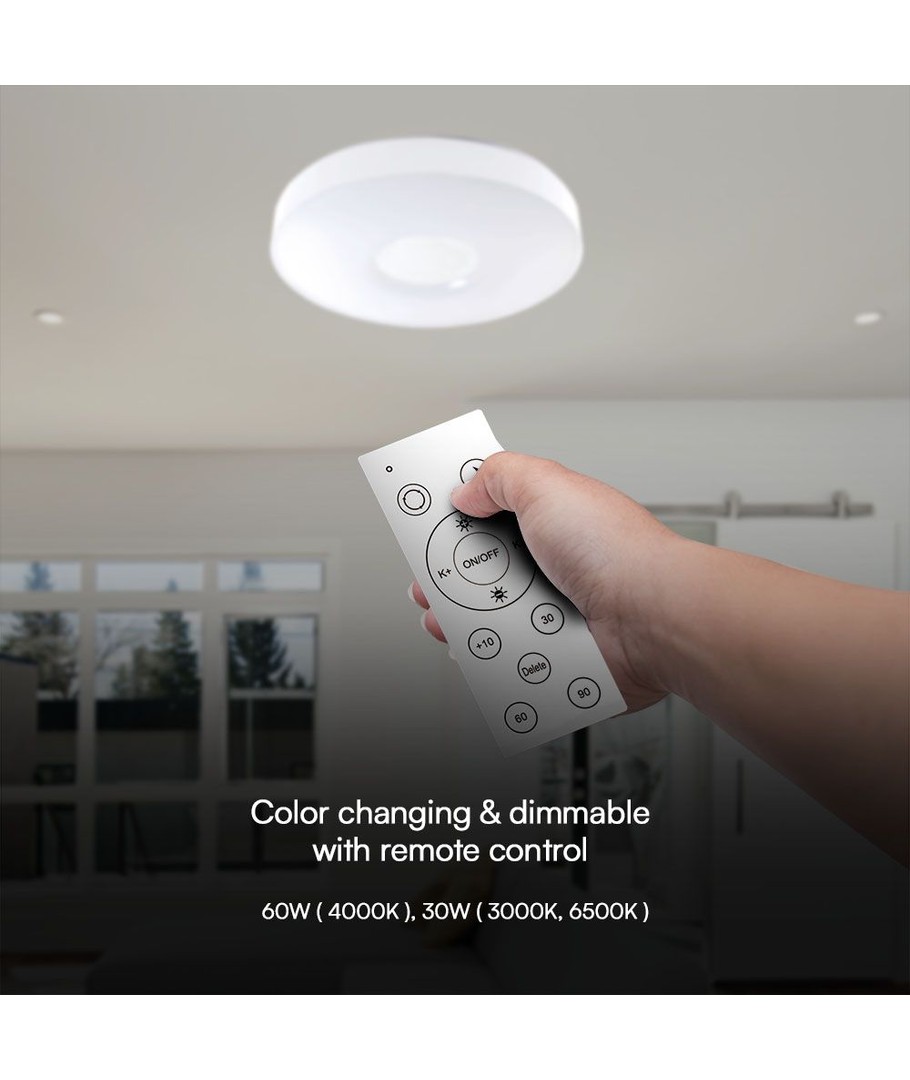 Avec la télécommande fournie, vous pouvez facilement ajuster l'intensité lumineuse. Ce plafonnier est dimmable, ce qui signifie que vous pouvez adapter la luminosité selon vos besoins, que ce soit pour la détente ou le travail.