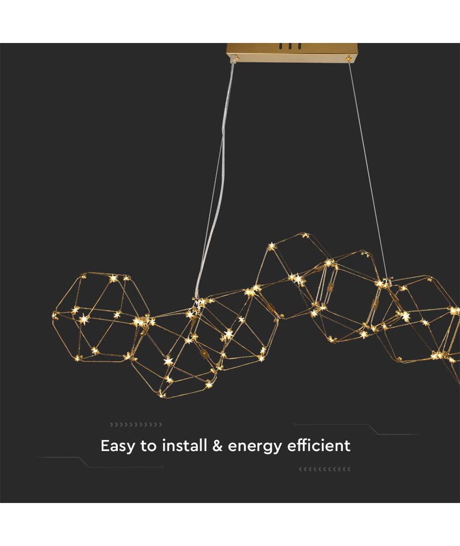 Détails du produit :La lumière blanc chaud à 3000K crée une atmosphère accueillante et relaxante, idéale pour des soirées conviviales à la maison. Cette suspension est conçue pour apporter une lueur douce et chaleureuse à vos espaces, mettant en valeur votre décoration avec sa finition élégante dorée et son design moderne.