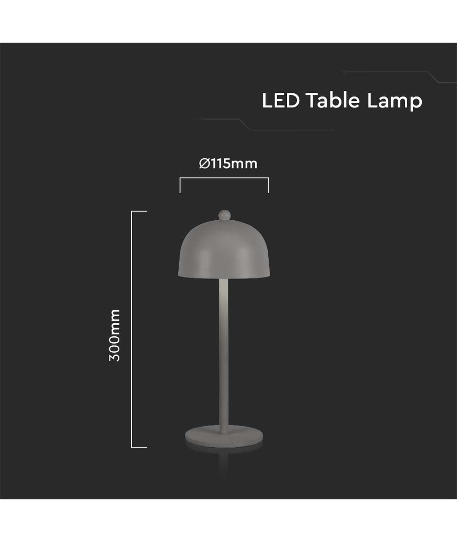 Avec des dimensions de 300 x Ø115 mm, cette lampe compacte s’intègre parfaitement sur n’importe quelle table sans prendre trop de place. Le design gris offre une finition moderne et élégante qui complète divers styles d’intérieur.