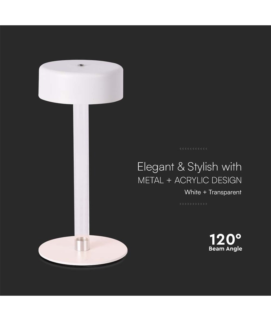 Notre lampe de table élégante allie fonctionnalité et esthétique. Elle est équipée d'une source lumineuse LED intégrée de 3W, qui offre un éclairage agréable et économe en énergie avec une luminosité de 210 lumens. Le design élégant de la lampe avec une finition blanche et une colonne centrale transparente apporte à toute pièce une apparence moderne et raffinée.