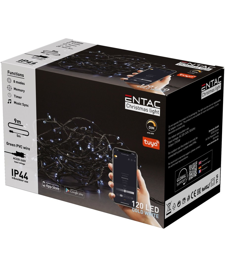 Tuya/Smart Life, 120 LED, fonction mémoire, IP44 extérieur, 230V