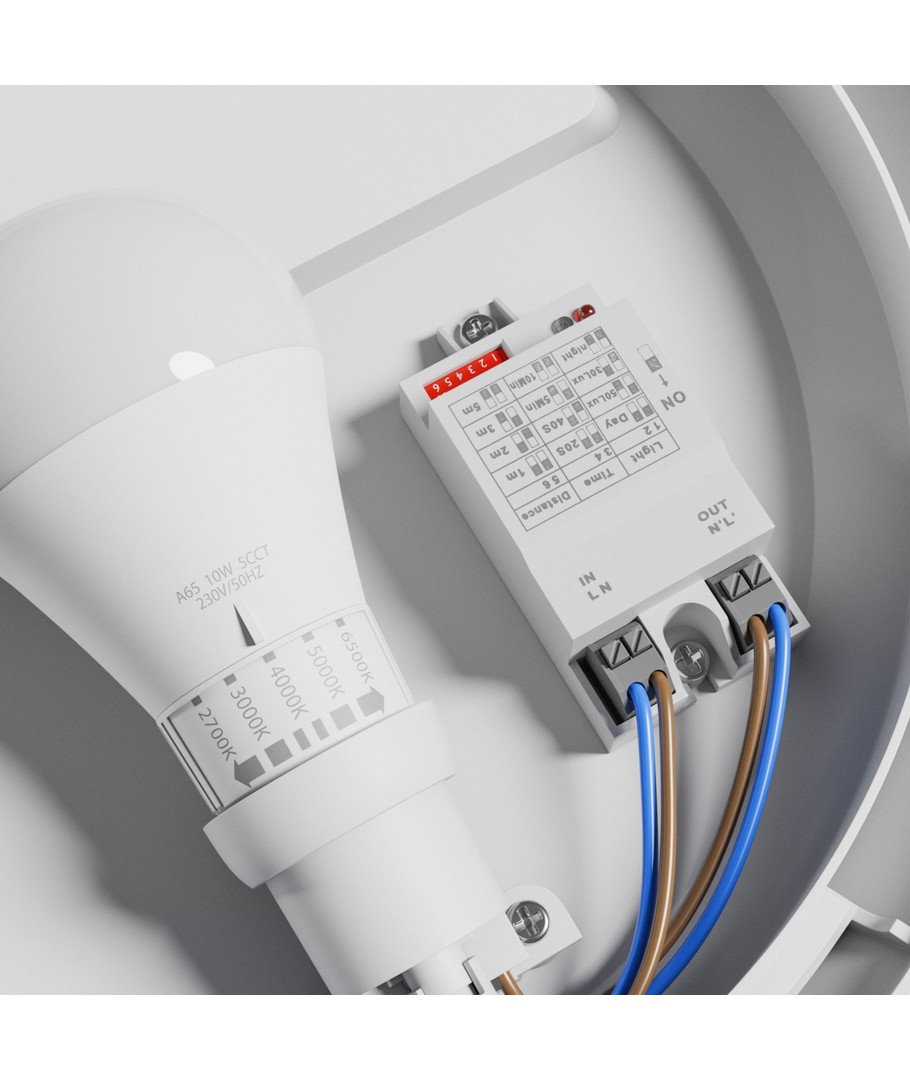 Découvrez la lampe à capteur polyvalente et robuste Ø30cm avec douille E27, idéale pour les endroits où la lumière est souvent oubliée allumée.