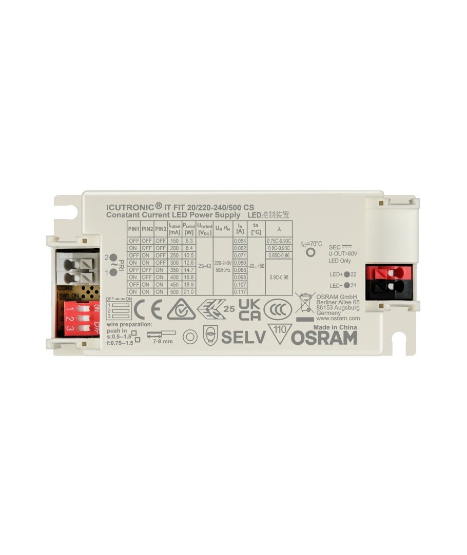 Peut être ajusté à une large gamme de sorties de courant, de 150mA à 500mA, voir le tableau ci-dessous.